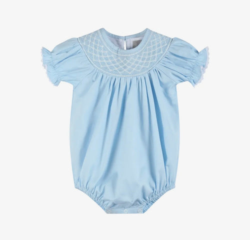 Blue Seersucker Bow Smocked Flutter Romper